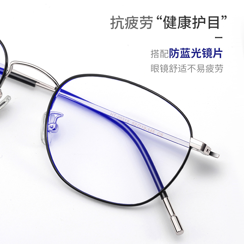 Pure titanium round frame myopia glasses female mobile phone computer anti-blue radiation flat light no degree protection eye male tide