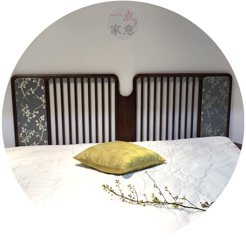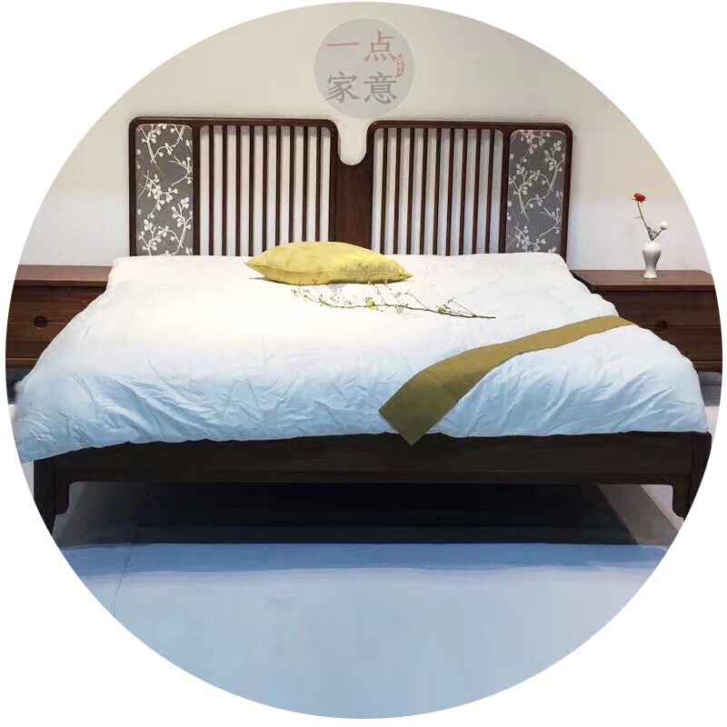 New Chinese style Zen ash wood bed retro Chinese style printing villa high-end apartment hotel customization