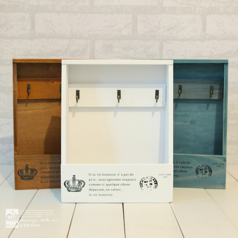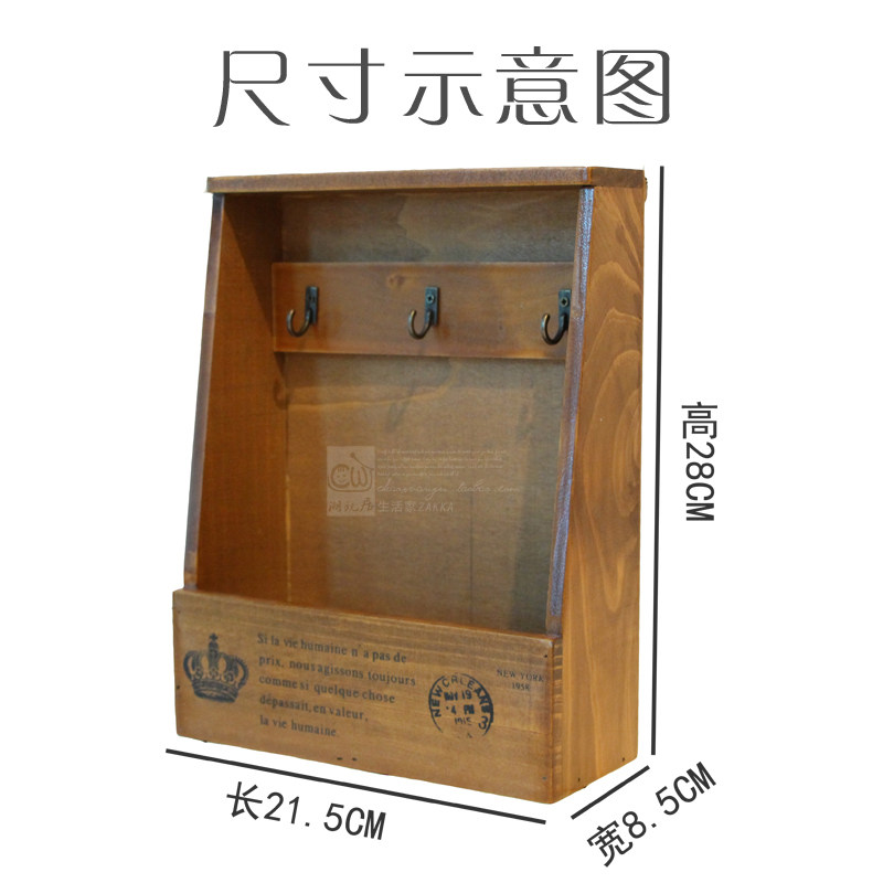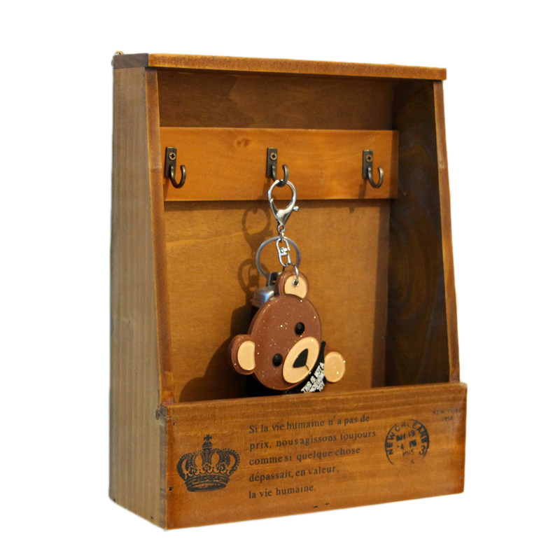 Wood Retro Wall-mounted Key Containing Wall-mounted Wall Surface Wood Box Door Rear Genguan Creative Desktop Object Decoration Shelf