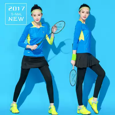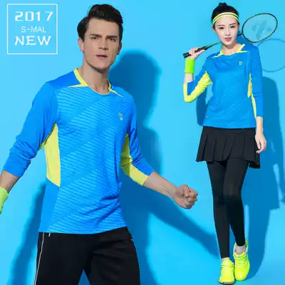 Autumn badminton clothes men's and women's couple suits round neck long-sleeved trousers nine-point trouser skirt slim slim quick-drying air permeability