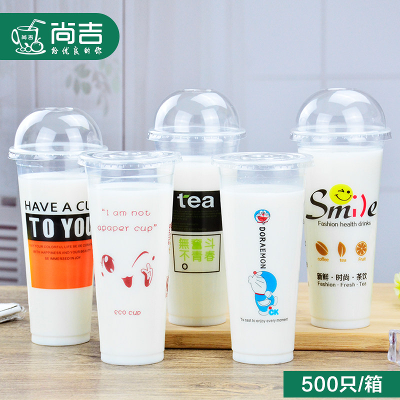 Milk tea cup Plastic cup thickened 90 caliber 500ml700 disposable juice cup Hot and cold beverage packing cup