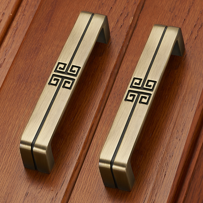 New Chinese cabinet door handle imitation ancient integral cabinet cabinet door solid green ancient bronze handle wardrobe drawers brass New handle