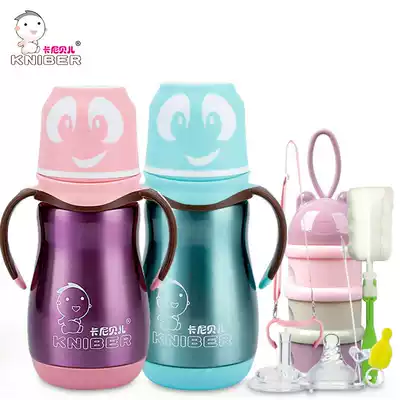 Stainless steel insulated bottle Children's drinking pot with straw cup Wide mouth fall-proof baby baby dual-use