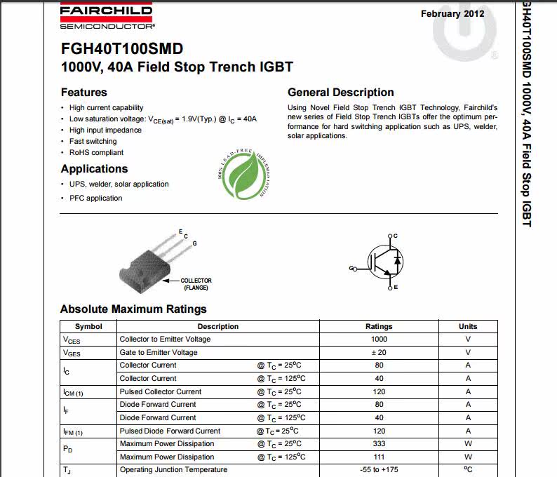 FGH40T100SMD 40a 1000V Inverter Welding Machine IGBT Single Tube Original Loose New Quality Assurance