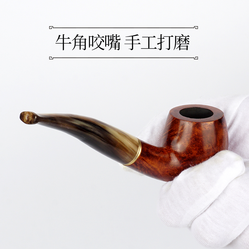 Youyou pipe men's old-fashioned solid wood horn shingnan wood pipe tobacco special tobacco hand filter accessories
