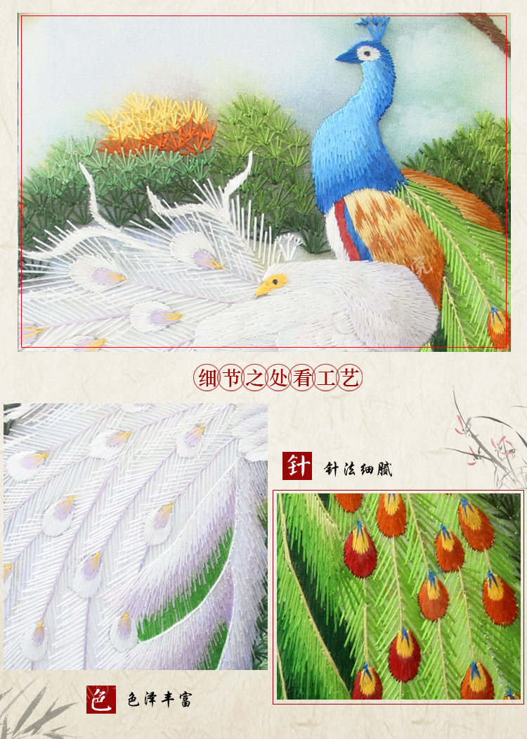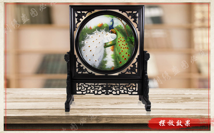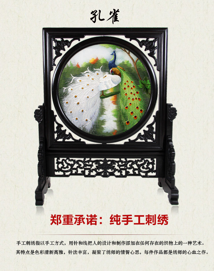 Peacock Guangdong embroidered beautiful gifts Chaozhou characteristics auspicious beautiful features small gift table TV cabinet decoration