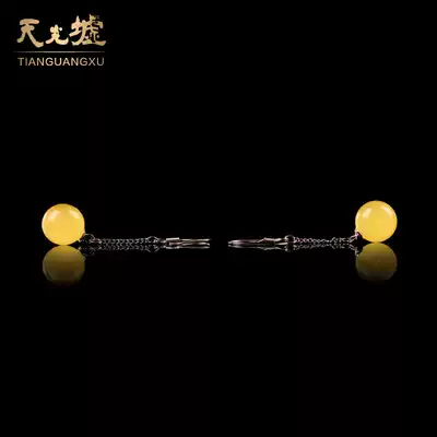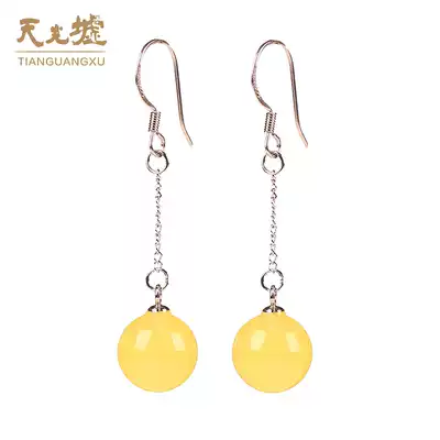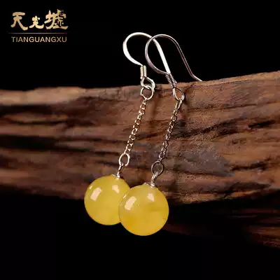 Tianguang Hui natural amber beeswax drop earrings women's beeswax earrings 925 silver inlaid earrings with certificate fashion