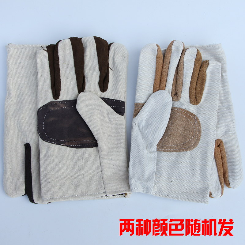 Thickened Canvas Gloves Plus Leather All-cotton Railway Carrying Gloves Machinery Abrasion Resistant Palm Pilato Electro-Welded Gloves