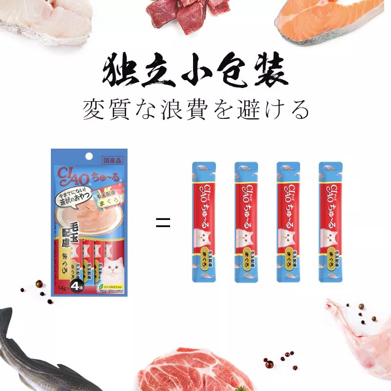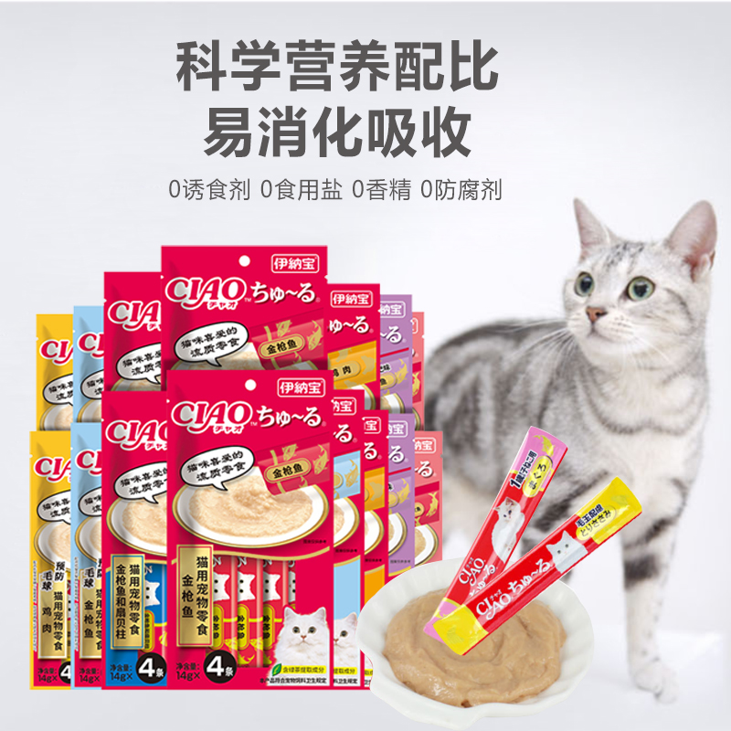 Big fat store Inabao ciao cat snacks Miaohao Chirping into kittens liquid cat strips Fresh pack wet food 4
