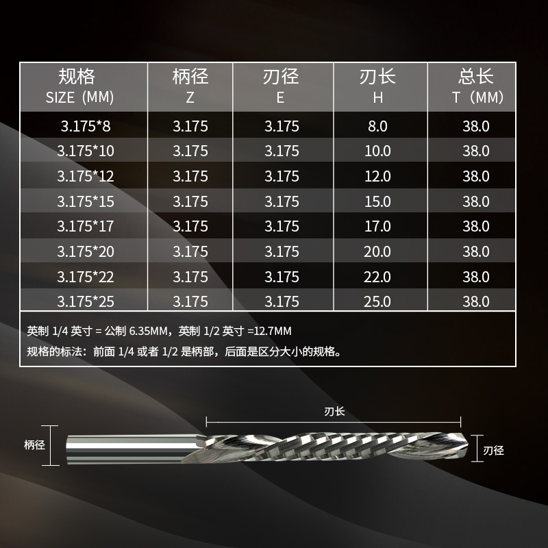 3A imported 3175 levot single-edged spiral milling cutter wood acrylic PVC cut down-cut cuttings engraving machine knife