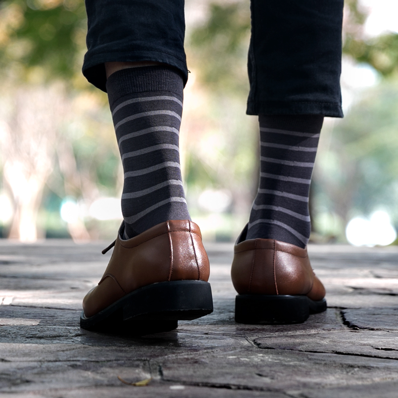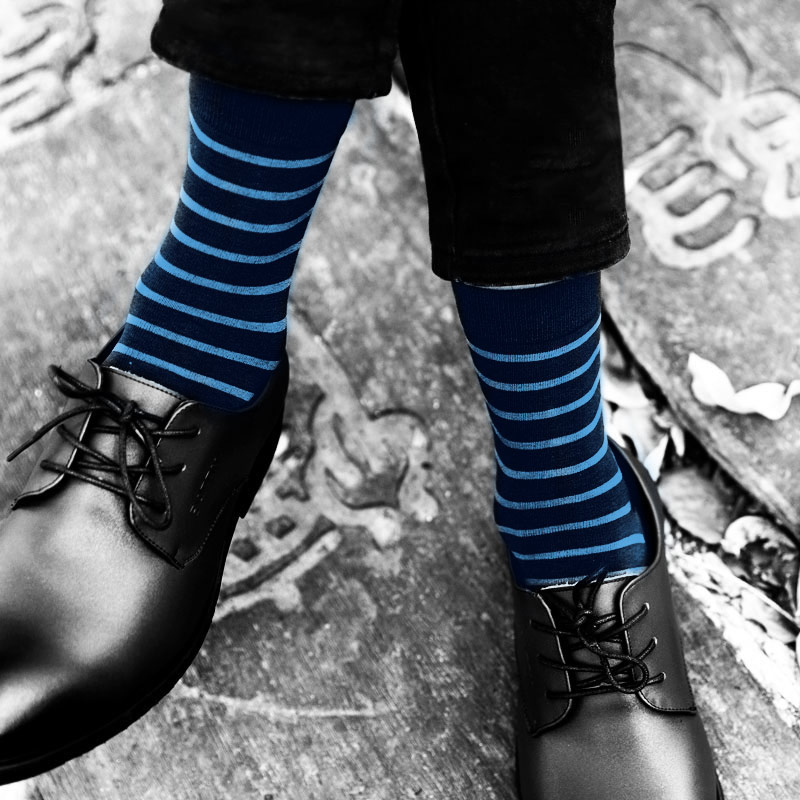 Shu Run mercerized cotton deodorant socks men's striped cotton socks black and white stripes antibacterial black and white leather shoes business middle tube