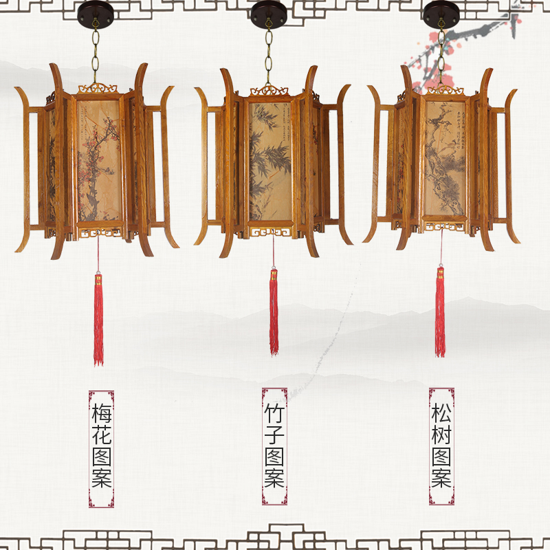 Chinese antique solid wood palace lantern lantern dining room hotel villa classical luminous New Year festival balcony lantern chandelier