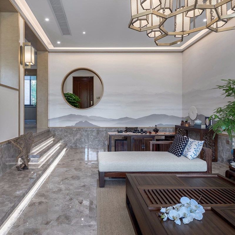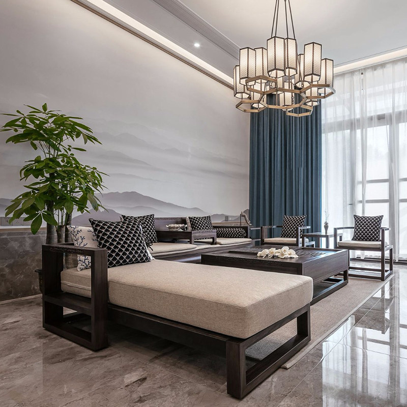 New Chinese-style sofa Zen solid wood fabric sofa combination living room sample house display center model house villa office furniture