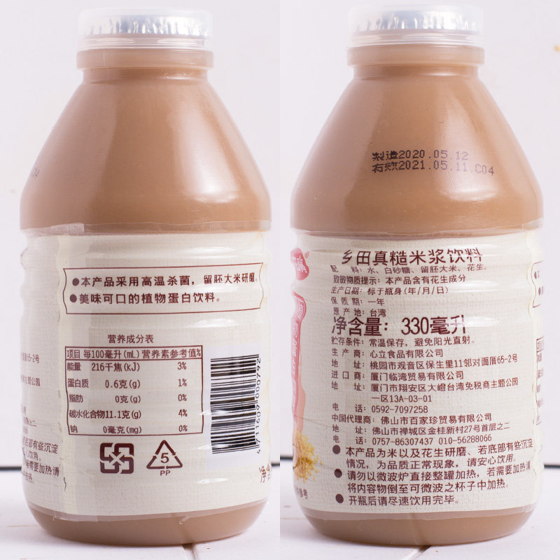Xiangtian Zhen Brown Rice Pulp 330ml * 6 bottles of Cereal Breakfast Drinks No Substitute Rice Soup Paste Taiwan Imported Drink