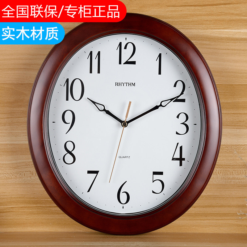 Li Sheng wall clock Living room Nordic pastoral bedroom Creative fashion solid wood clock trend Oval silent wall clock