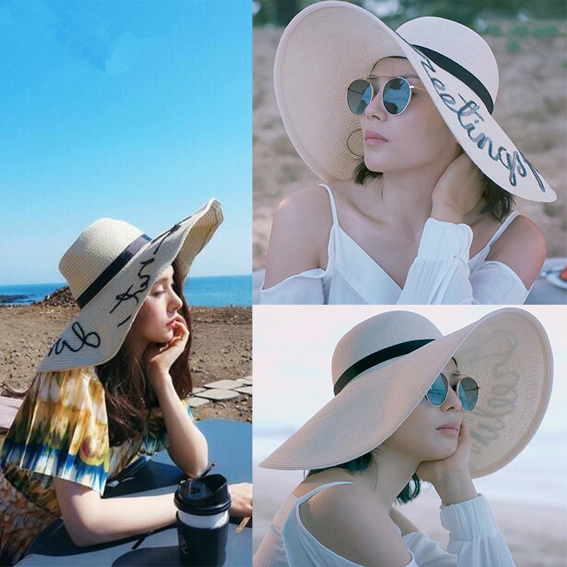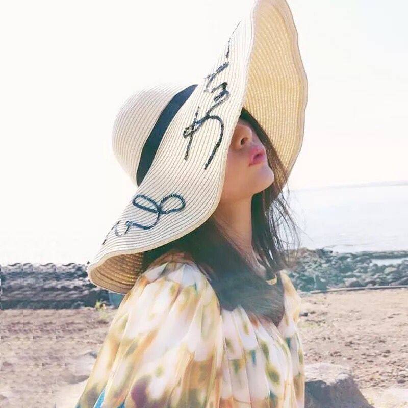 Beach hat women's sunhat seaside vacation straw hat big hat brim hat sunscreen hat big brim hat big brim hat cover face travel Sanya hat