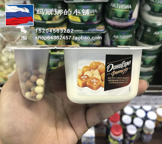 Russian supermarket fresh yogurt Danone sour milk bean soy milk caramel chocolate bean yogurt delicious 2 flavors
