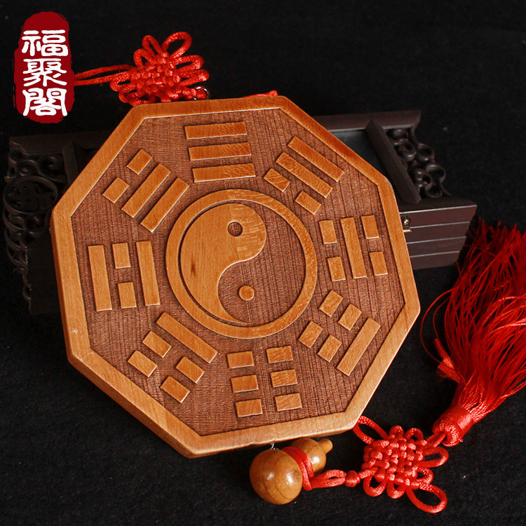 Peach Wood Eight Divination Mirror Town Residence for the Fortune Teller of the Yin Yin Yang Fish Peach Wood Mirror Gourd Dried Kun Pendant Wood Carving