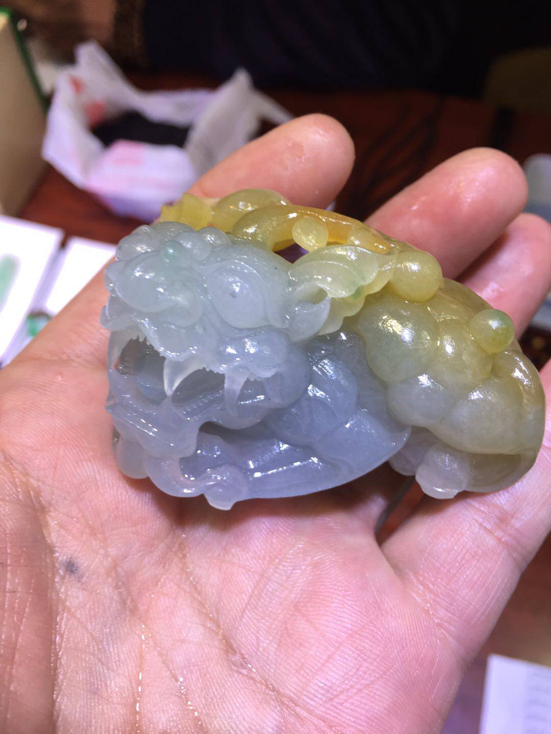 Tian Dexiang Myanmar natural a goods Jade Pixiu seal carved Pixiu hand play handle pieces old pit Pixiu card