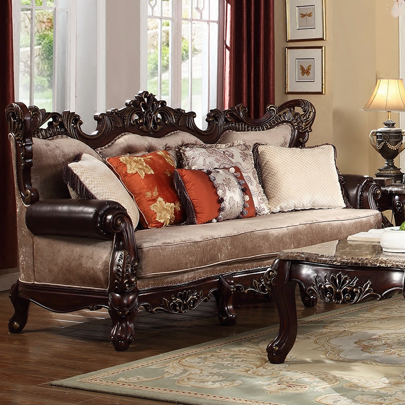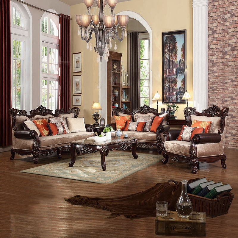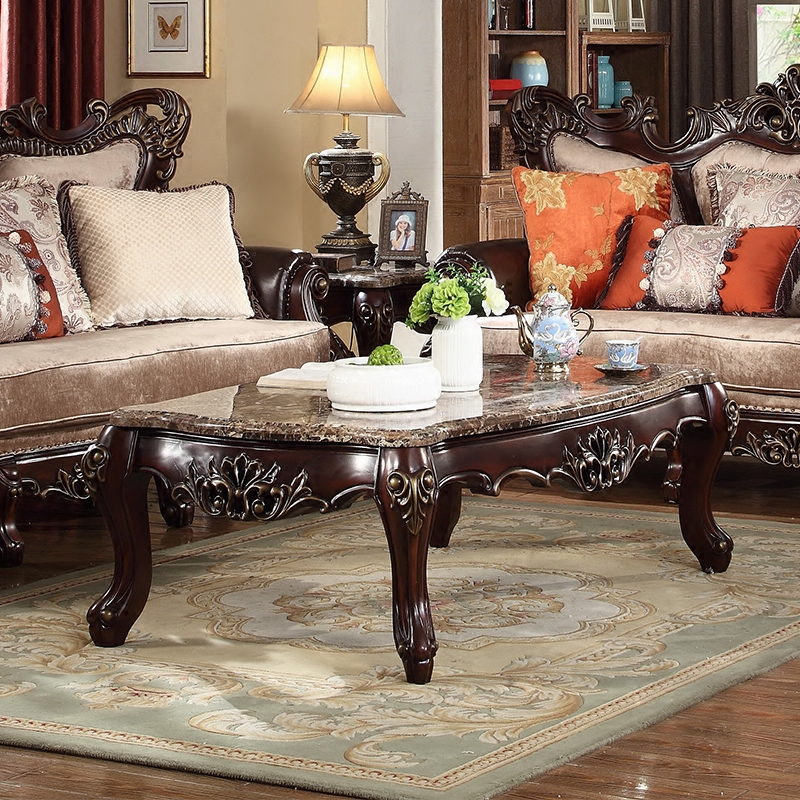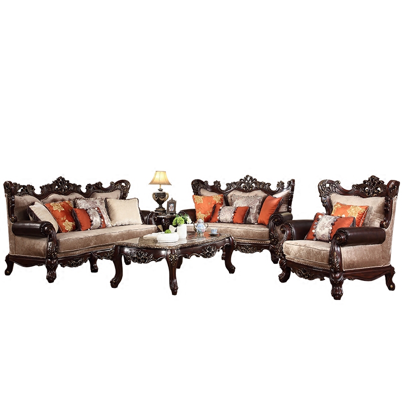 American luxury all solid wood sofa high-end fabric large apartment villa furniture stele forest carved living room coffee table combination