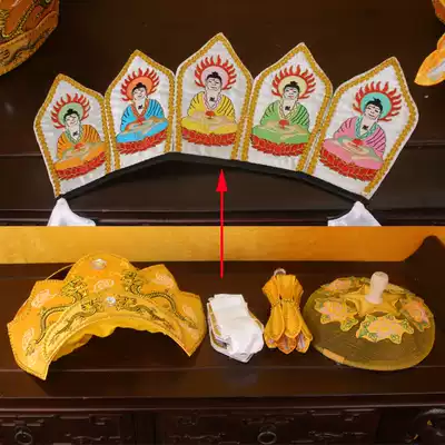 Master Yankou Piru hat Piru hat with five Buddha crowns and six-character truth embroidery Bell promotion embroidered Golden dragon monk hat