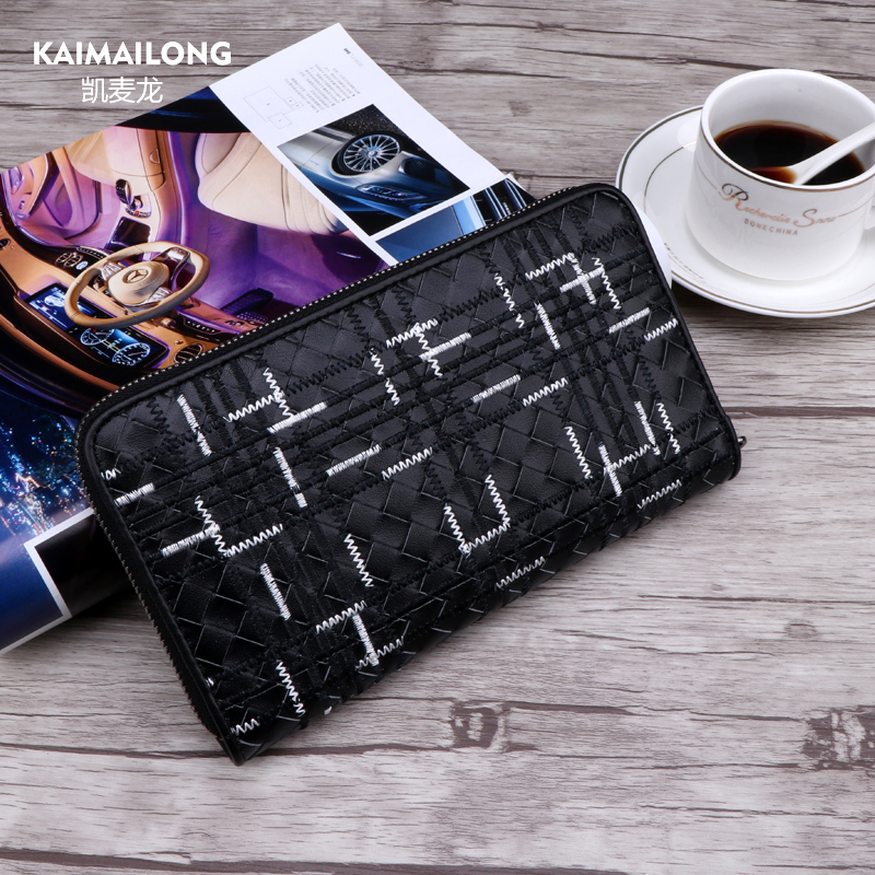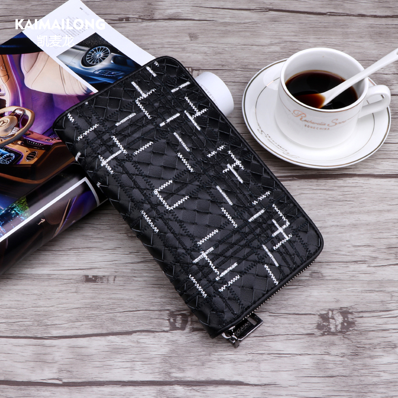 Cowhide Woven Long Wallet Men's Wallet Zipper Men's Korean Style Long Men's Clutch Bag Men's Handbag Genuine Leather