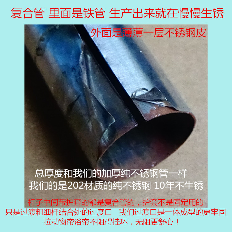Non-perforated curtain rod single rod telescopic simple nail-free installation shower curtain telescopic rod super long stainless steel thin rod 3 meters