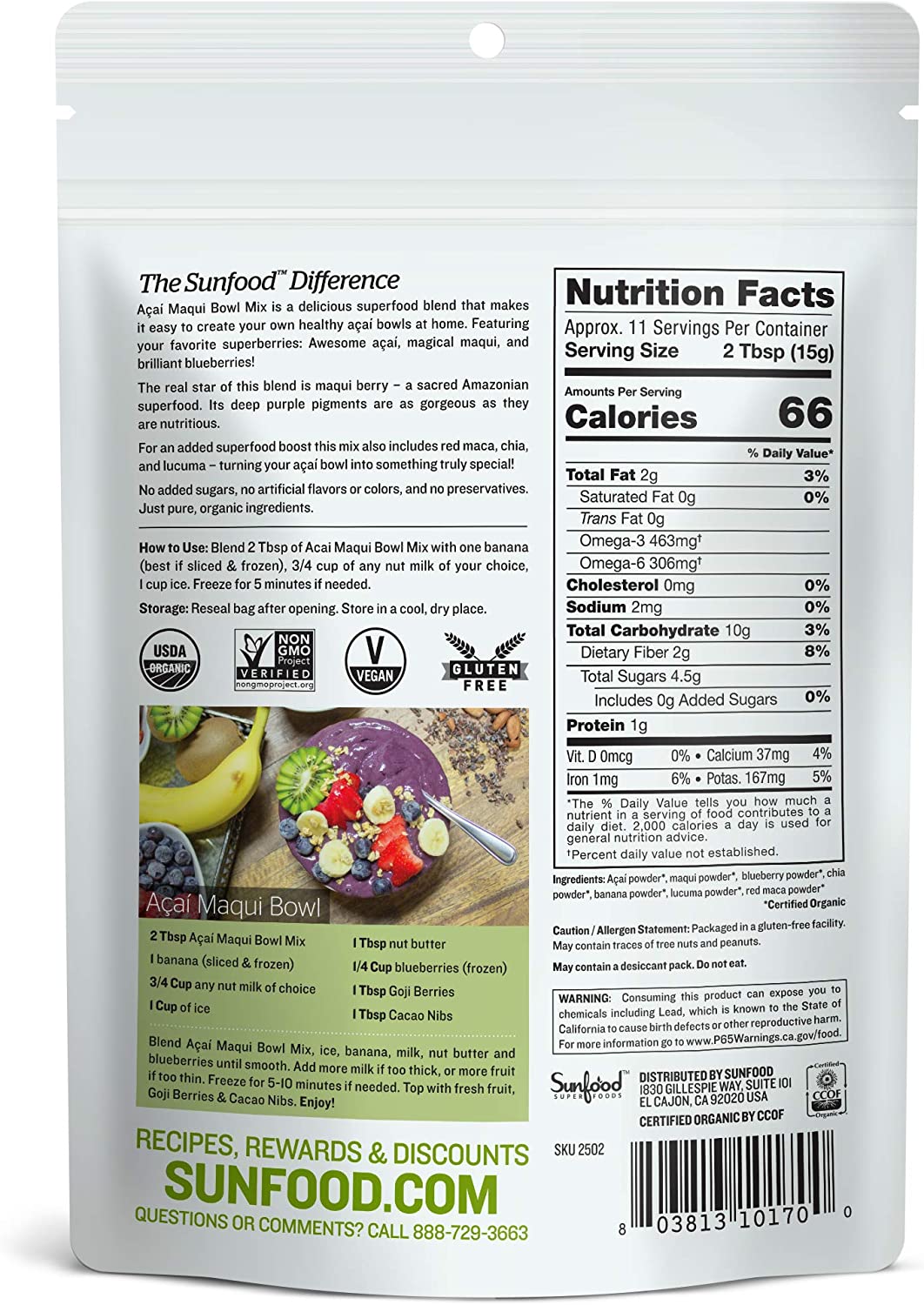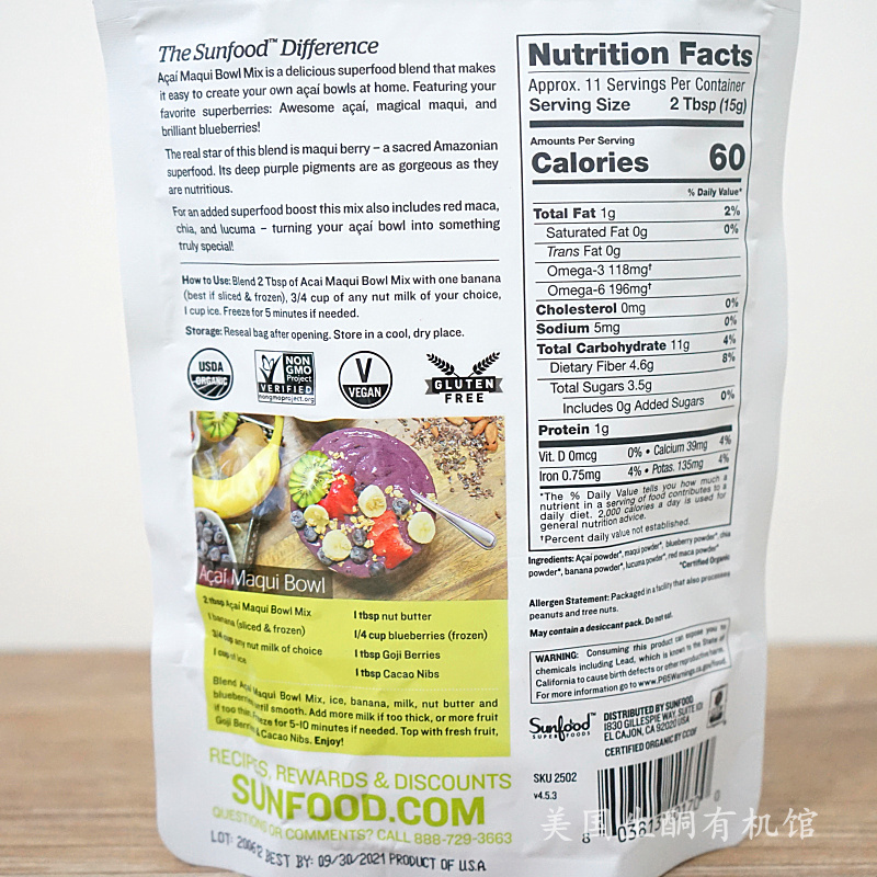 American Sunfood Maqui Organic Acai Berry Maqui Berry Powder Assorted Fruit Mix Powder Antioxidant Gluten Free