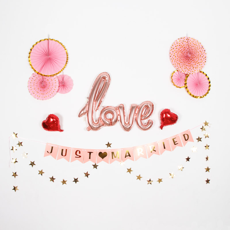 Wedding Decoration JUST Maried Letters Laflower Color Flags Wedding House Love Balloons Wedding Arrangement Suits-Taobao
