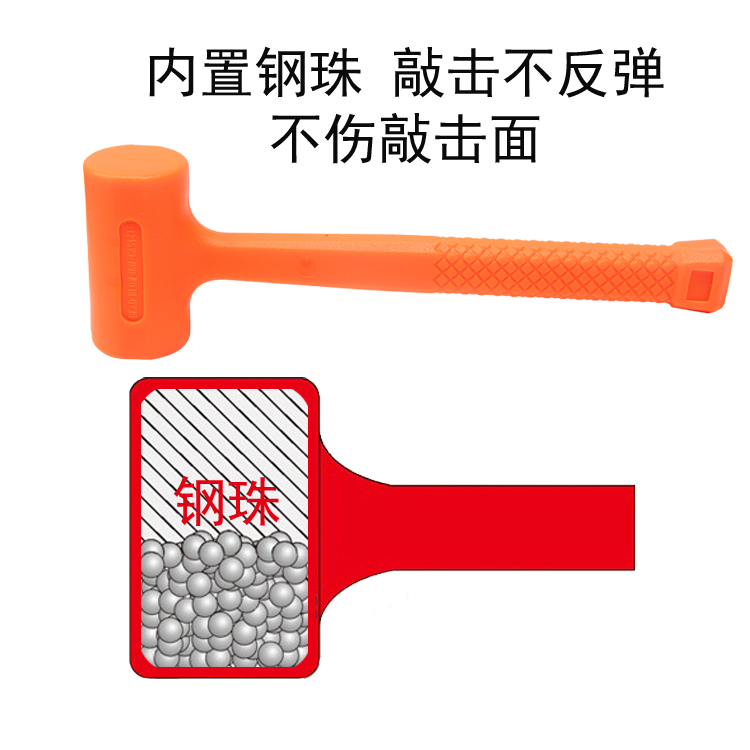 Non-elastic mounting hammer Flat top rubber hammer Champagne hammer Non-rebound shockproof hammer Rubber hammer Built-in steel ball