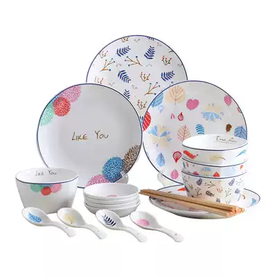 Dishes set Ceramic creative plates Dishes dishes chopsticks spoons 20 home-use Chinese simple combination tableware set