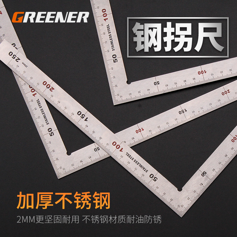 Green forest stainless steel angle ruler 90-degree thickened multifunctional multipurpose angle ruler woodworking right angle ruler 500mm turning ruler