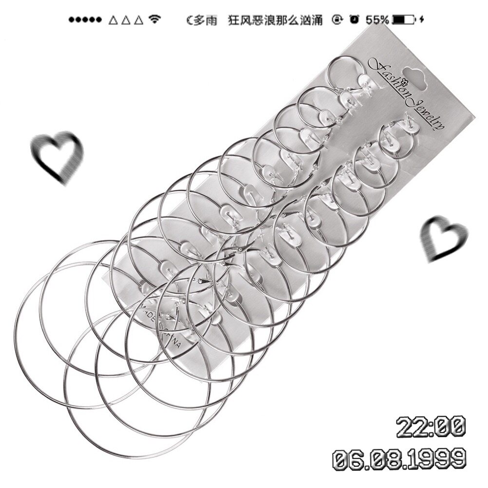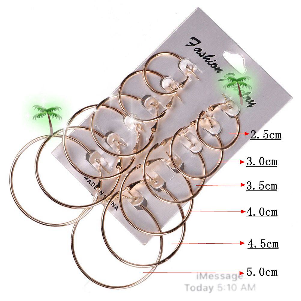 Large and small ring earrings simple retro earrings female European and American Korea exaggerated circle ring set 12 pairs 6 pairs