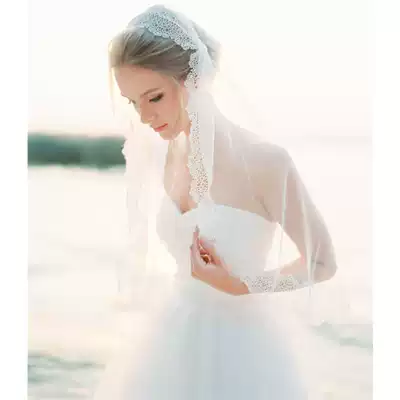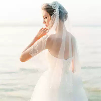 Wedding veil short Korean style simple bride wedding photo travel headdress accessories Lace hat-style headdress