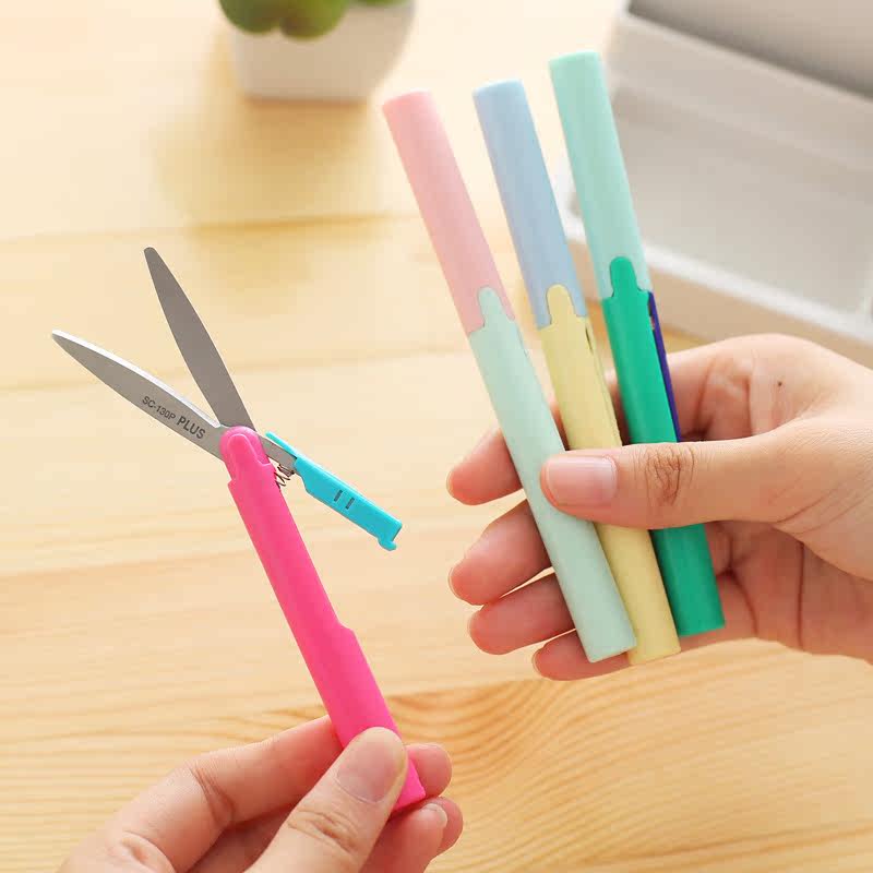 Moon Sea Selection Japan PLUS Pen Style Portable Scissors Paper Cutting Knife Folding Safety Pocket Scissors Meme
