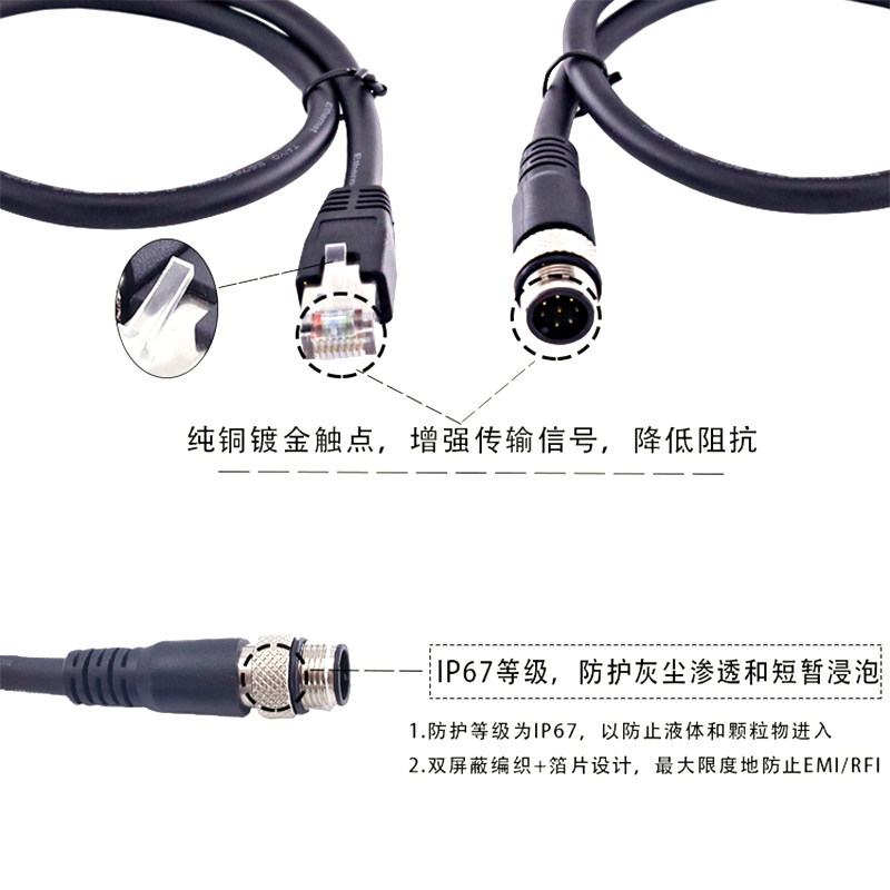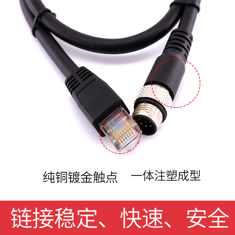 M12 transfer RJ45 connector Cognex industrial camera data cable aviation plug 8-core A-type drag chain network cable