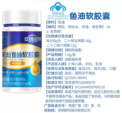Angel Newt Fish Oil Soft capsules Deep sea Fish Oil Middle-aged and elderly Hypolipidemic 40 capsules*3 bottles