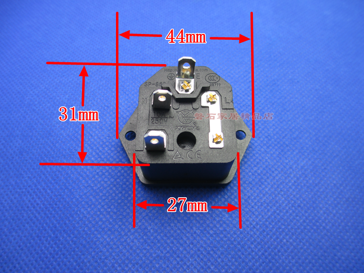 Pure copper high temperature resistant AC power socket two-in-one with fuse with ear 3 contact pin pinword socket 10A-Taobao