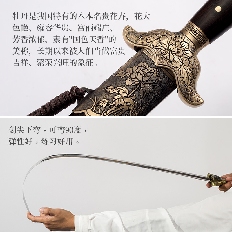 Dragon Quan Yang's Taiji Sword Sub-Light Stainless Steel Peony men and women morning practice patterned steel soft sword martial arts sword unopened-Taobao