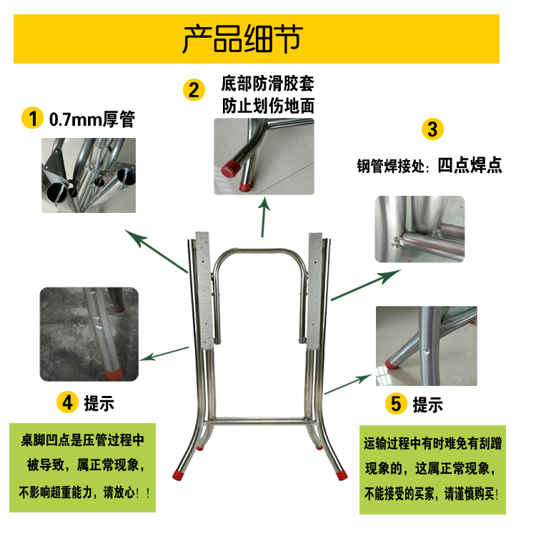 Stainless steel table foot simple folding plate steel pipe table leg bracket iron table foot food stall table foot