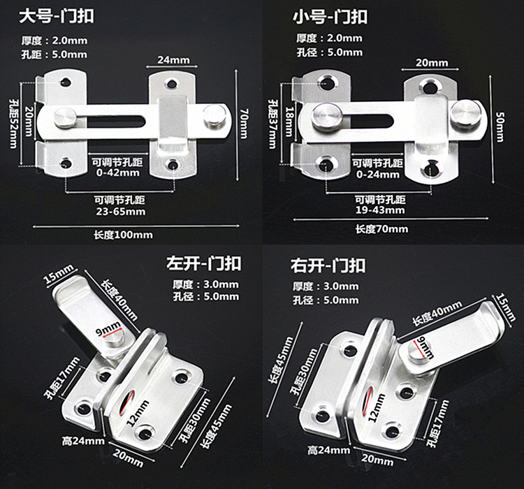 Stainless steel door buckle, wooden door, iron door, anti-theft door bolt, sliding door buckle, safety toilet latch