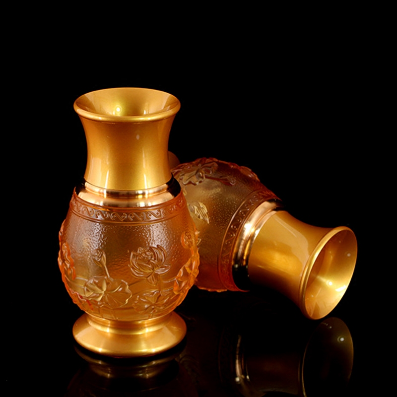 Buddhist Hall Supplies Glazed Vase for Buddhist Lotus vase Buddha Former Guanyin vase A pair of household inserts vase pure copper