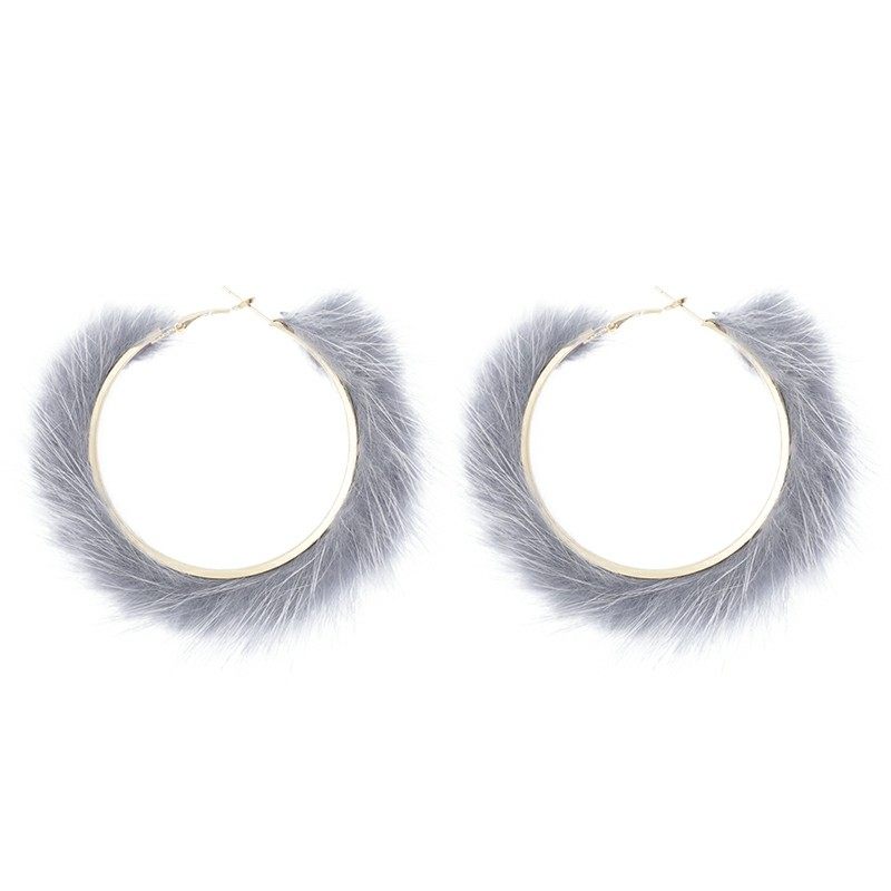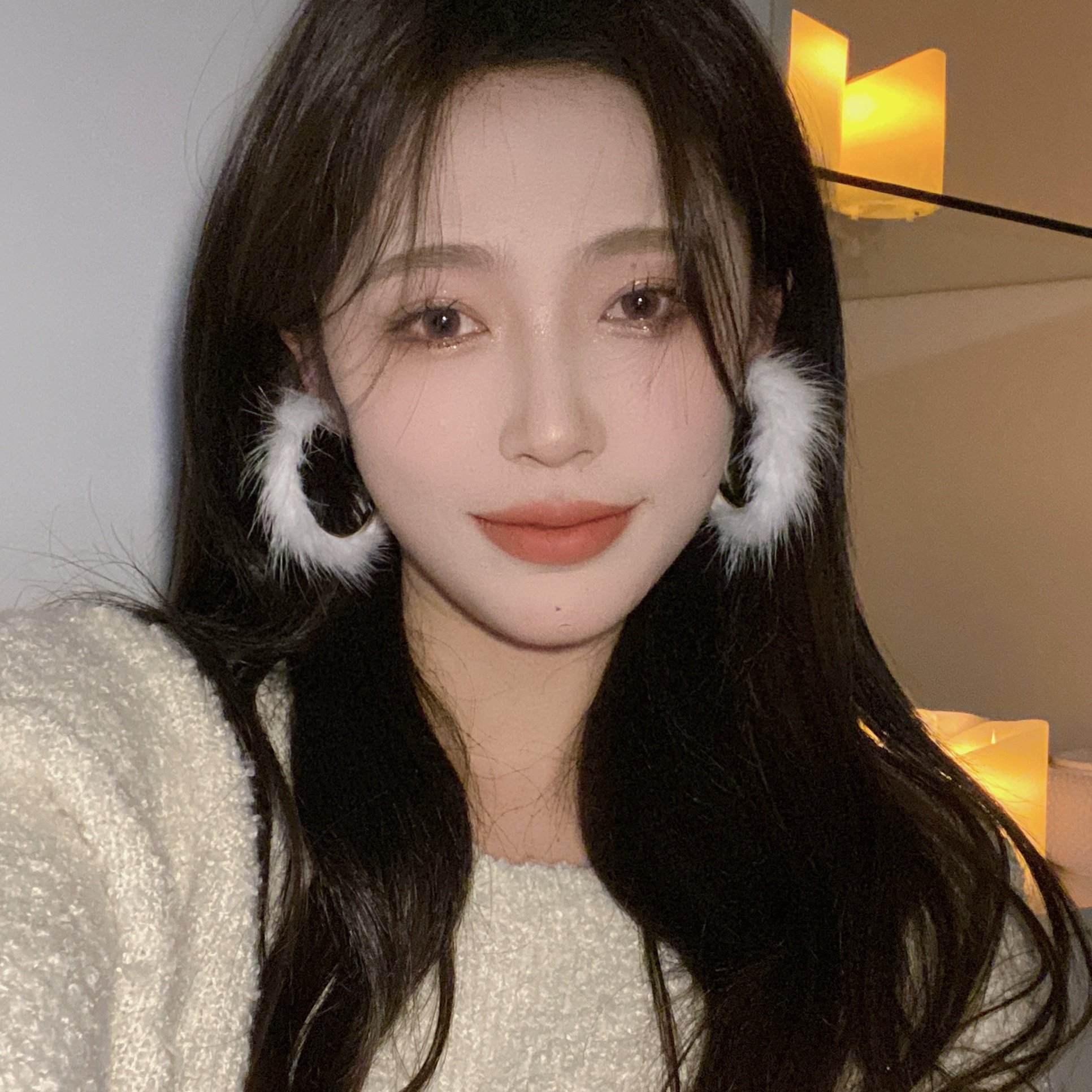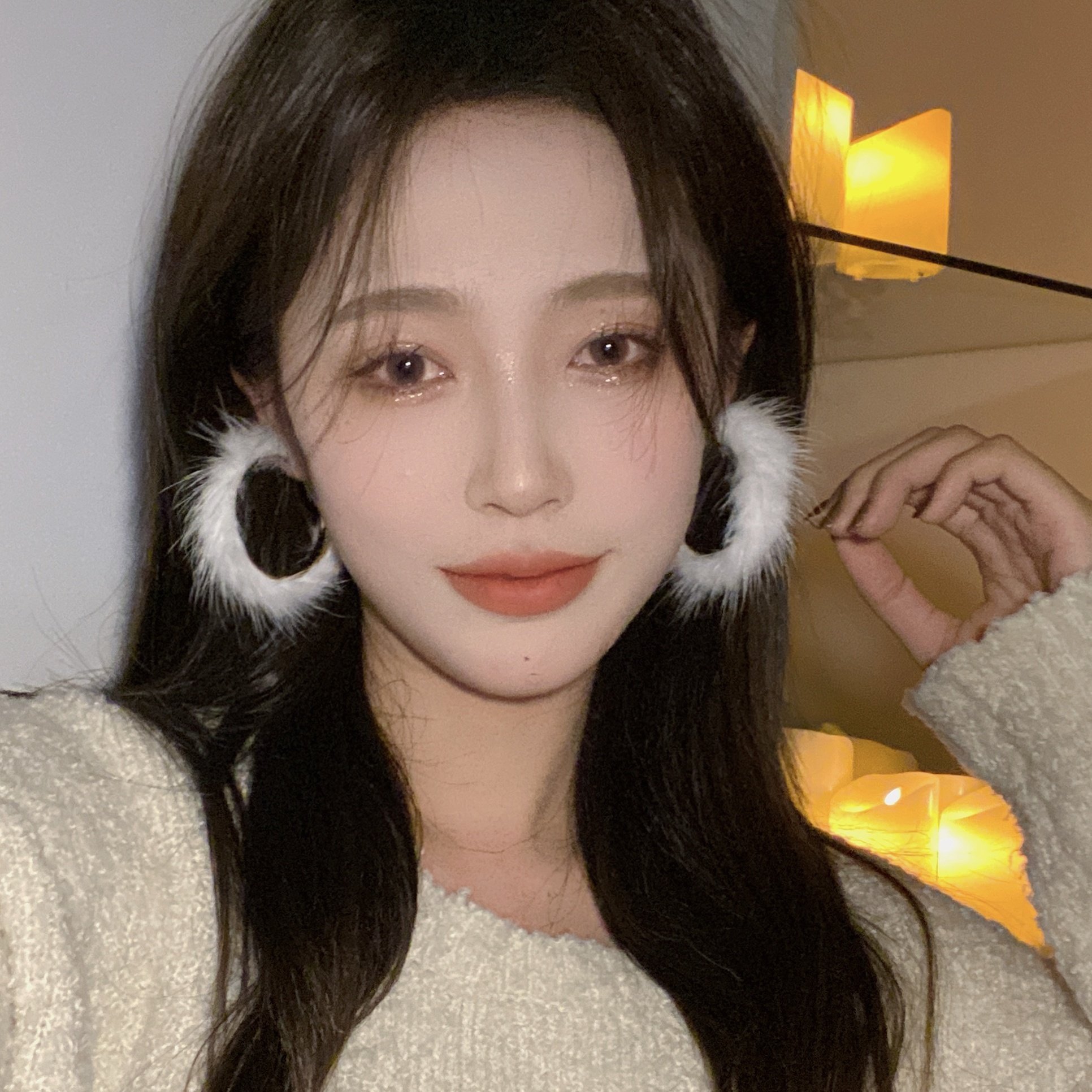 South Korean autumn and winter minke hair ear needles and European and American fashion Exaggerated Personality hair loops large circle net red plush earrings female