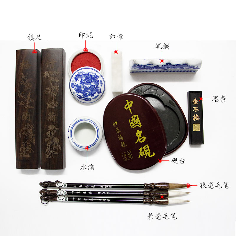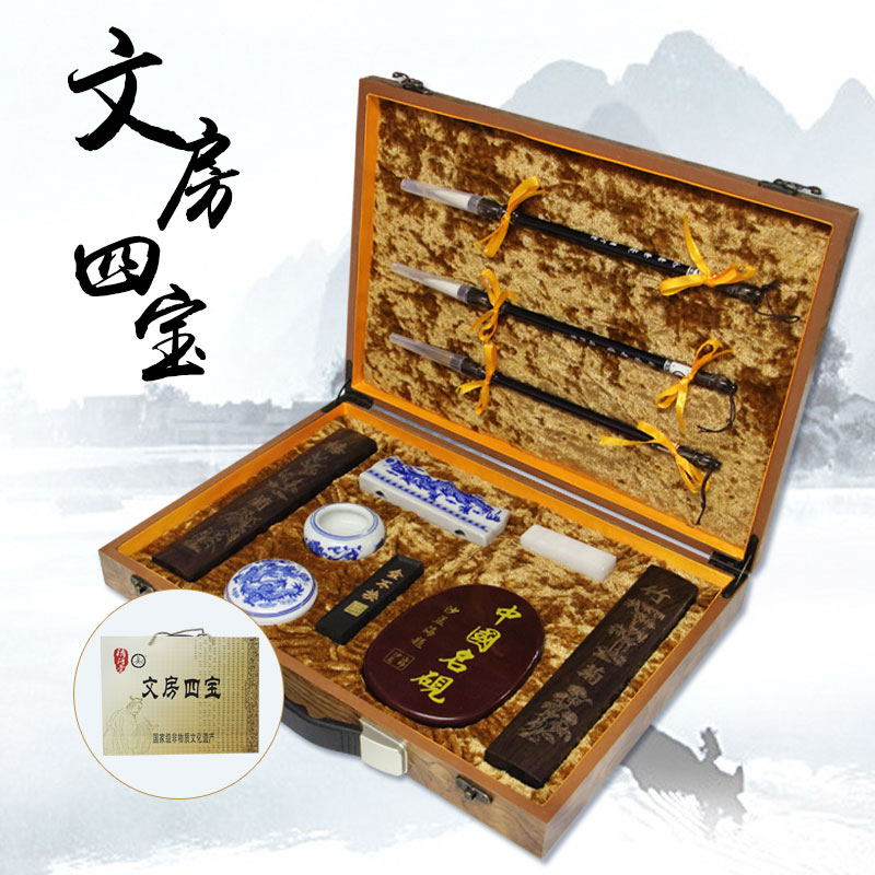 Vin House Four Treasure Suit Pen Ink Paper Inkstone Adult Calligraphy Practice Wolverine Brush Pen Holder Ink ink Ink Stone stone Town ruler Calligraphy Culture Supplies Brush Suit Beginner high-end boutique gift box set for gift