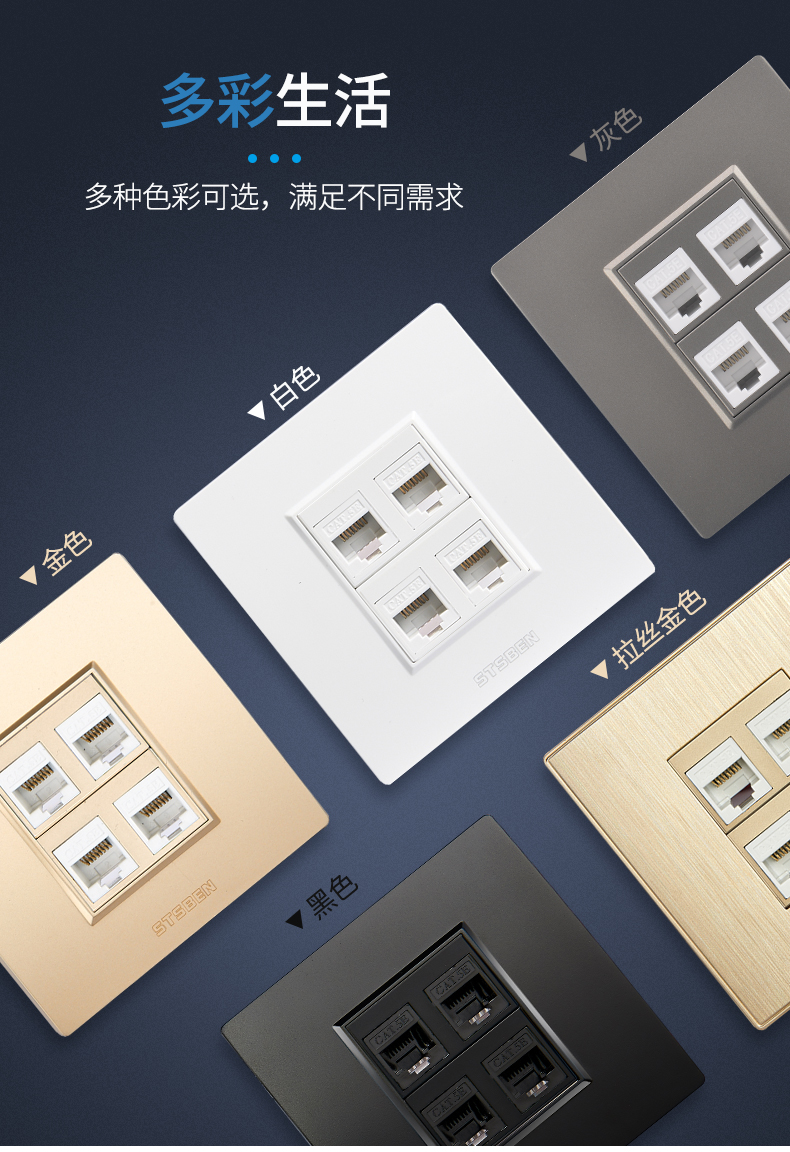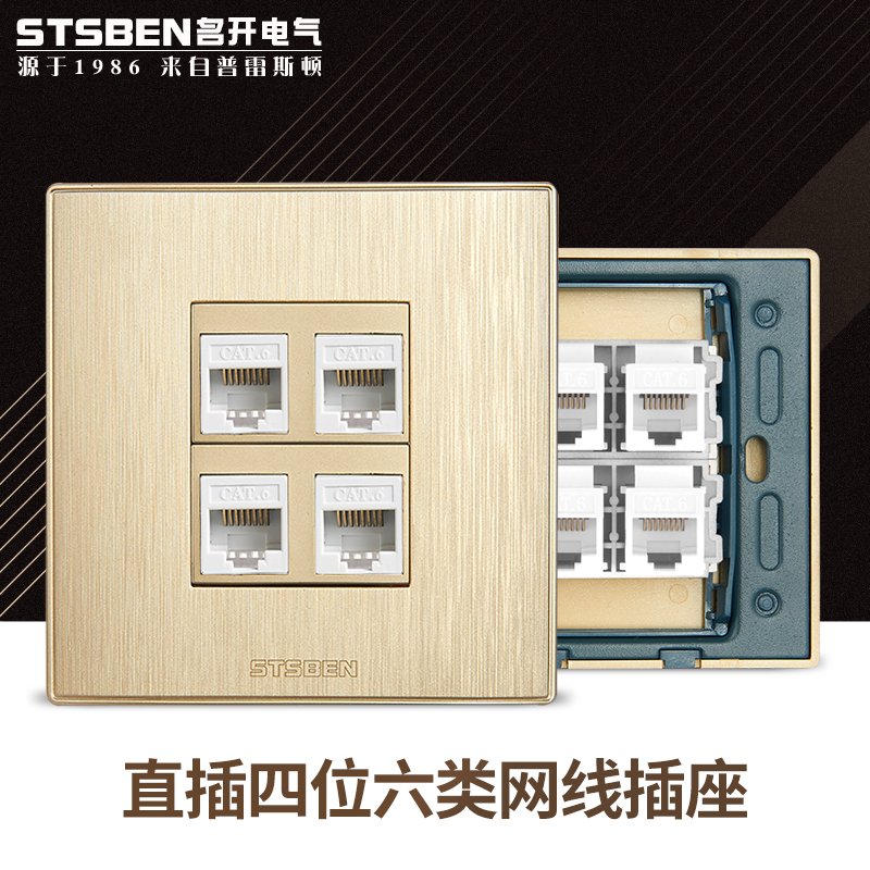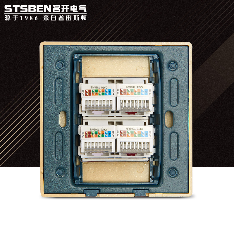 Four six types of network cable sockets in-line to four six types of network cable sockets Four supersix categories of shielded mesh routes sockets in-line with four six types of shielded mesh routes sockets