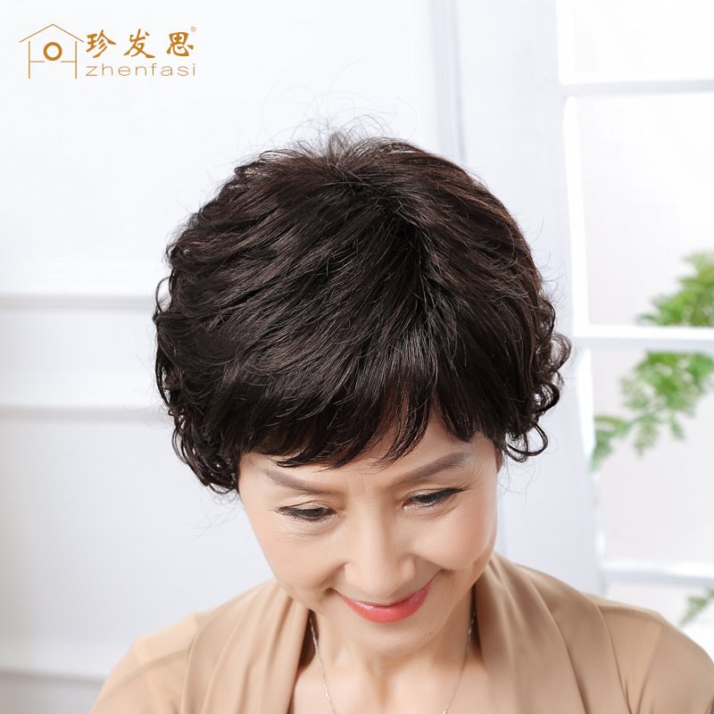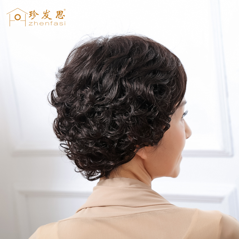 Mid-age wig fluffy short curly hair All true man Mother Chemotherapy Bald Special Wig Kit Summer Breathable Nature