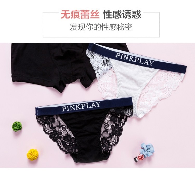 Lace Sexy Couple Pants Pure Cotton Briefs Female Style Low Waist Thin TRANSPARENT TRIANGLE PANTS FULL COTTON MEN'S FOUR CORNERS PANTS