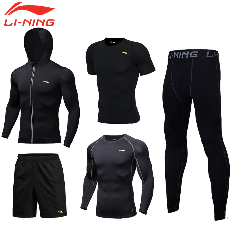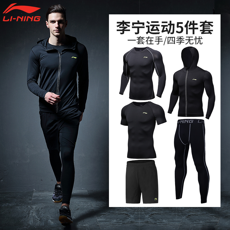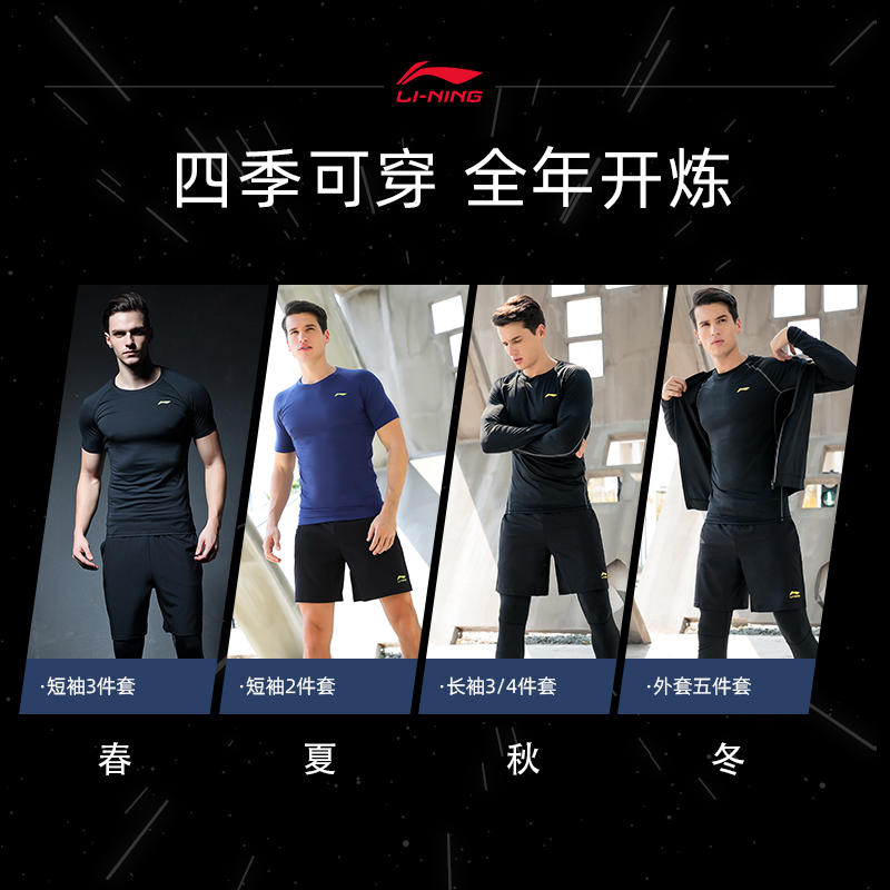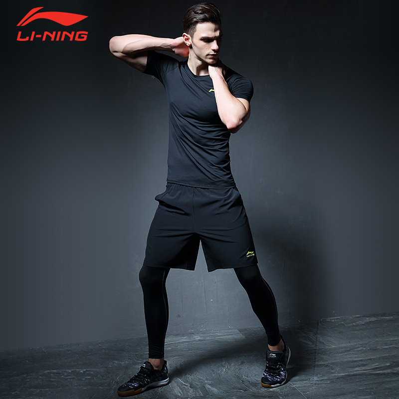 Li Ning sports suit Men's fitness clothes quick-drying clothes Running clothes short-sleeved morning run spring and autumn 2021 new summer