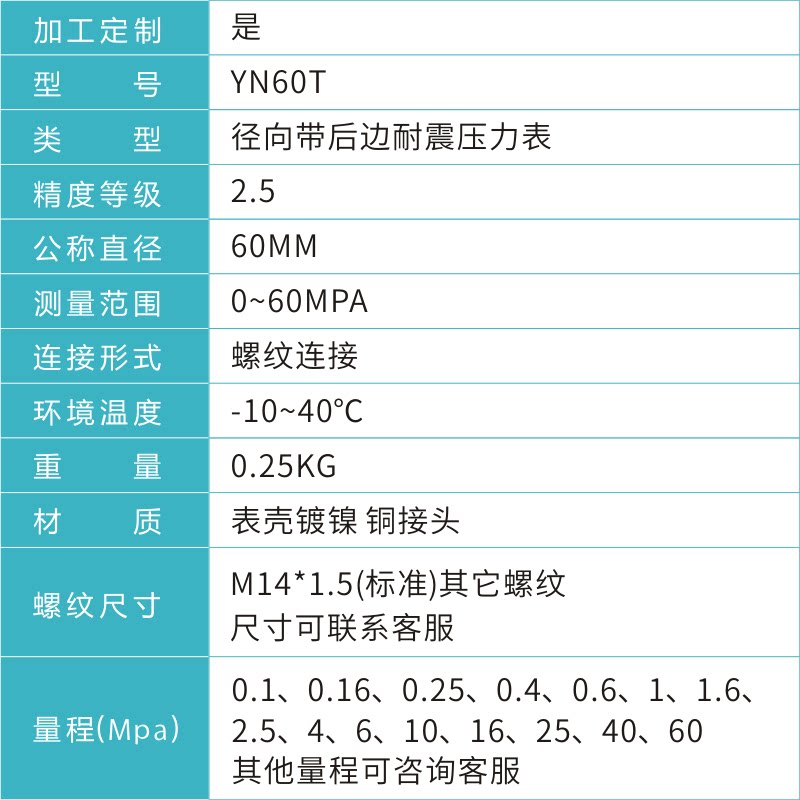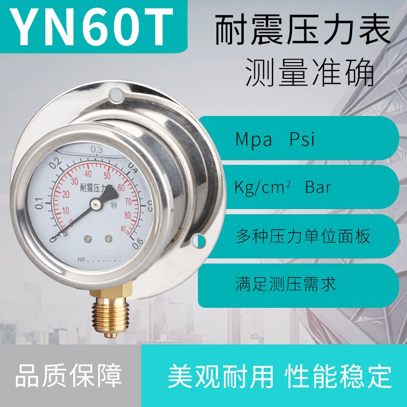 Pressure meter YN60T marine shock resistant pressure meter radial belt rear edge oil pressure hydraulic water pressure thread M14 * 1 5