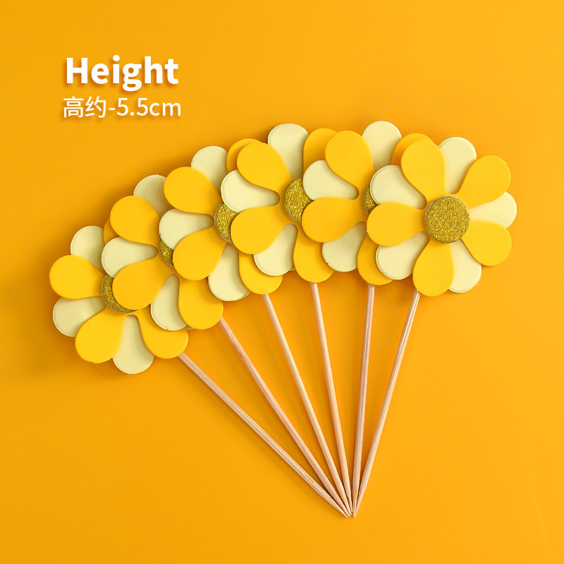 Flower Cake Decoration Happy Birthday Baking Ornament Petal Fondant Dessert Ice Cream Card Toothpick Card